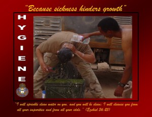 A lot of things boost our strength and joy when we’re deployed – good chow, mail from home, MWR stuff, etc, but most of us wouldn’t normally put hygiene in the top 10. Like insurance, hygiene is costly to maintain and many of us really don’t see the importance of it until we need it. It’s not that we don’t want it or need it. We expect it! Can you imagine not having fresh water to brush your teeth, wash your hands after using the latrine, or de-funk your armpits after a long day in the sun? Most Soldiers have been there, done that, and those deployed now probably still wear the stinking T-shirt!
